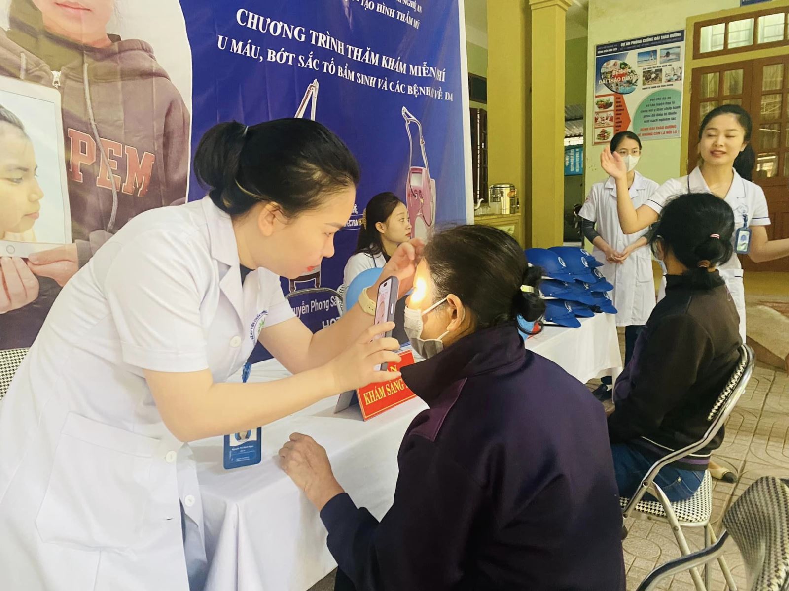 Đội ngũ bác sỹ chuyên khoa da liễu, phẫu thuật tạo hình thăm khám cho các bệnh nhân ở các phường như Bến Thủy, Hưng Dũng, Hà Huy Tập...